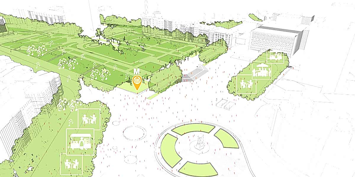 Proje kapsamında meydanın kentle, mevcut çevresel dokuyla ilişkisi fiziksel ve görsel olarak irdelenmekte, meydan seyredilen ve yaşanan bir kent sahnesi olarak tanımlanmaktadır. Mekânsal deneyimin bellekle, hareketin vektörel yönüyle ilişkisi etüd edilerek Cumhuriyet Caddesi, Talimhane, İnönü Caddesi, Mete Caddesi, Tarlabaşı Bulvarı, Sıraselviler, İstiklal Caddesi meydan yaklaşımları düzenlenmiş, meydanı çevreleyen ve kimliklendiren -Gezi Parkı, Atatürk Kültür Merkezi, Güney Bloğu Apartmanları, Aya Triada Kilisesi, Taksim Maksemi, Taksim Cami ve Taksim Cumhuriyet Anıtı- landmarklarıyla Taksim Meydanı’nın mekânsal ilişkisi yeniden yorumlanmıştır.
