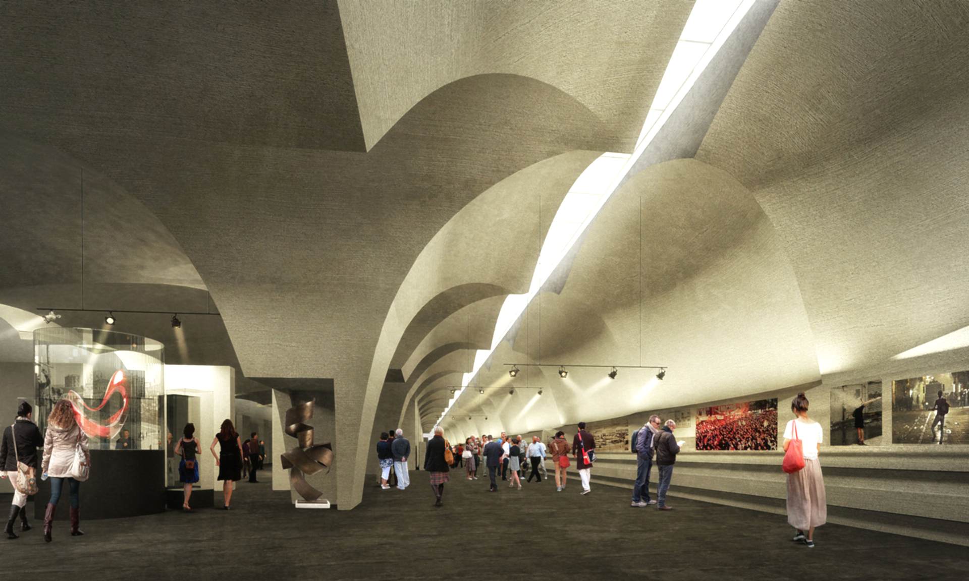 Mekanın belleği geçmişe ait pek çok iz taşır. Geçmişi bilmek yeniden canlandırmak için değil, geleceği tasarlarken kaybolmamak, kim olduğunu hatırlamak için önemlidir. Taksim yalnızca İstanbul’un değil Türkiye tarihinin de önemli bir parçasıdır. Bu itibarla araç yolunun yer üstüne alınmasıyla işlevsizleşen Cumhuriyet Caddesi yeraltı araç yolu yeni bir yapısal ve mekânsal düzenlemeyle Taksim –Bellek- Müzesi’ne dönüştürülmüştür. Bu müzede -mezarlıkların sessizliğine suyuyla hayat veren Maksem’den Taksim Stadı’na, yıkılarak bir kent parkına dönüştürülen kışlaya, 1 Mayıs olaylarından Gezi direnişine kadar uzanan- mekanın tarihi interaktif bir anlatımla sergilenecektir. Taksim Meydanı günlük etkinliklerin odağıyken meydanın altı mekanın belleğini muhafaza etmektedir. Müze, sergi, konferans gibi çeşitli etkinliklerle insanların kullanımına açılan bu negatif mekan meydanın kullanımına katkı koyan yeni bir landmarktır. Meydanla, feniküler hattı, metro ve metro çıkışlarıyla ilişkilendirilen müzenin girişi Prost planıyla uyumlu olarak Gezi Parkı’nın Cumhuriyet Caddesi yönünden Taksim Meydanı’na yönelen köşesindedir. Müzenin tavanında yer alan pencereler meydanla müze arasındaki görsel bağı kuvvetlendirir